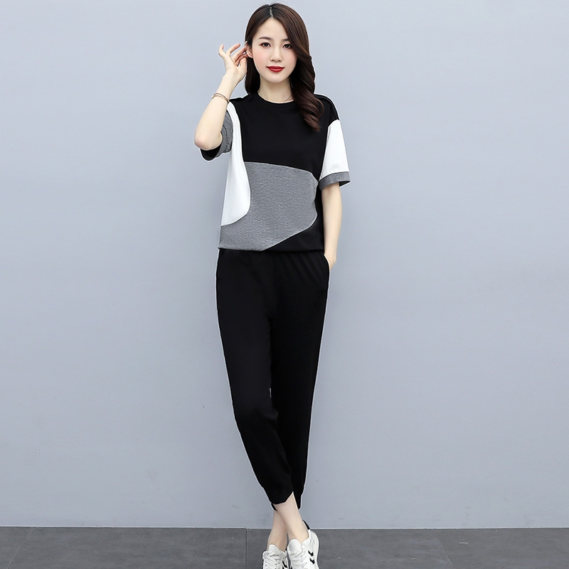 Casual Sports Suit Women Ice Silk Summer 2022 New Foreign Pie Trendy Mom Fashion O'S Clothing Little Guy