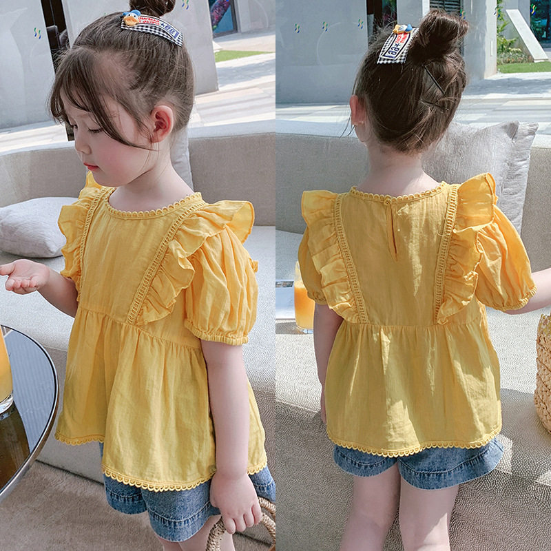 Children short sleeve shirt 2021 Summer new girl blouses foreign Pays Korean version female baby Loose Doll-Sweat