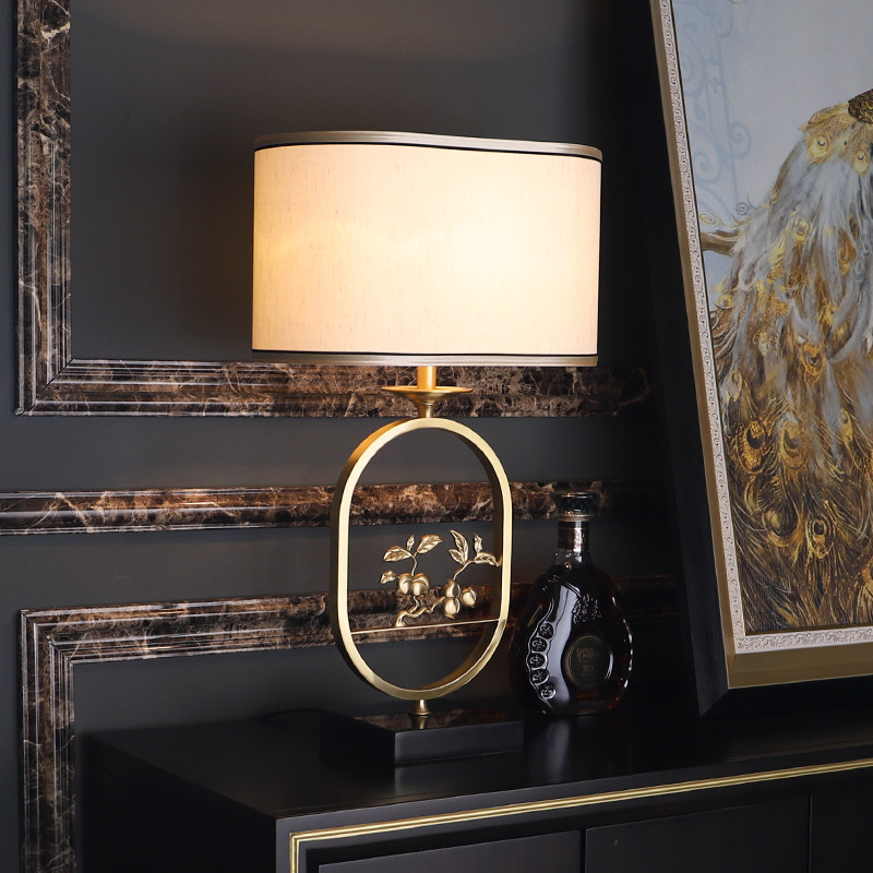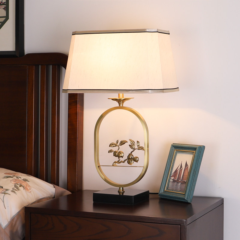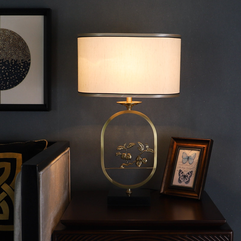 New Chinese all-bronze table lamp Living room Retro book Room Bedroom Bedroom Headlights Classical disc peach China Wind Zen Yiddish