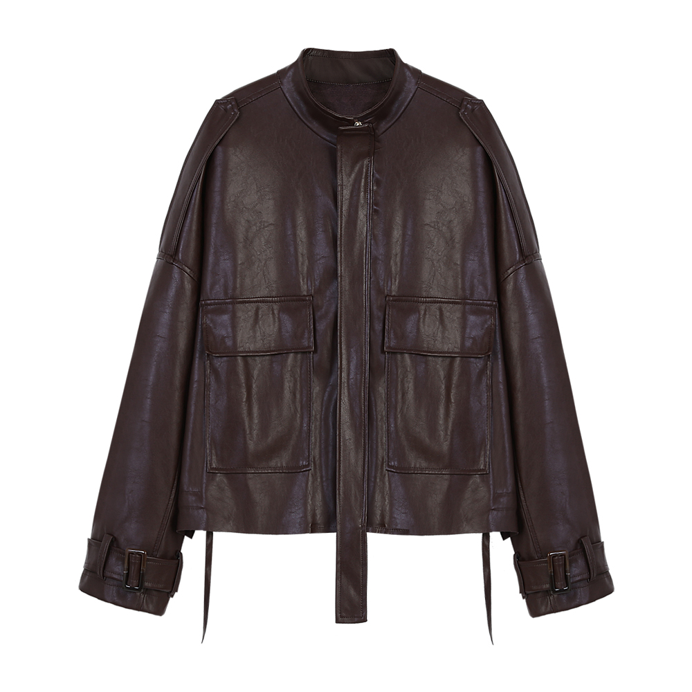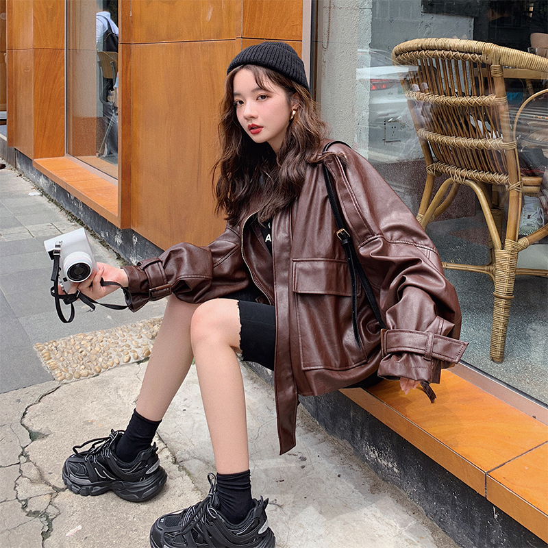 Cape leather jacket female short section 22 spring and autumn new Korean version loose casual motorcycle clothing PU leather small jacket jacket