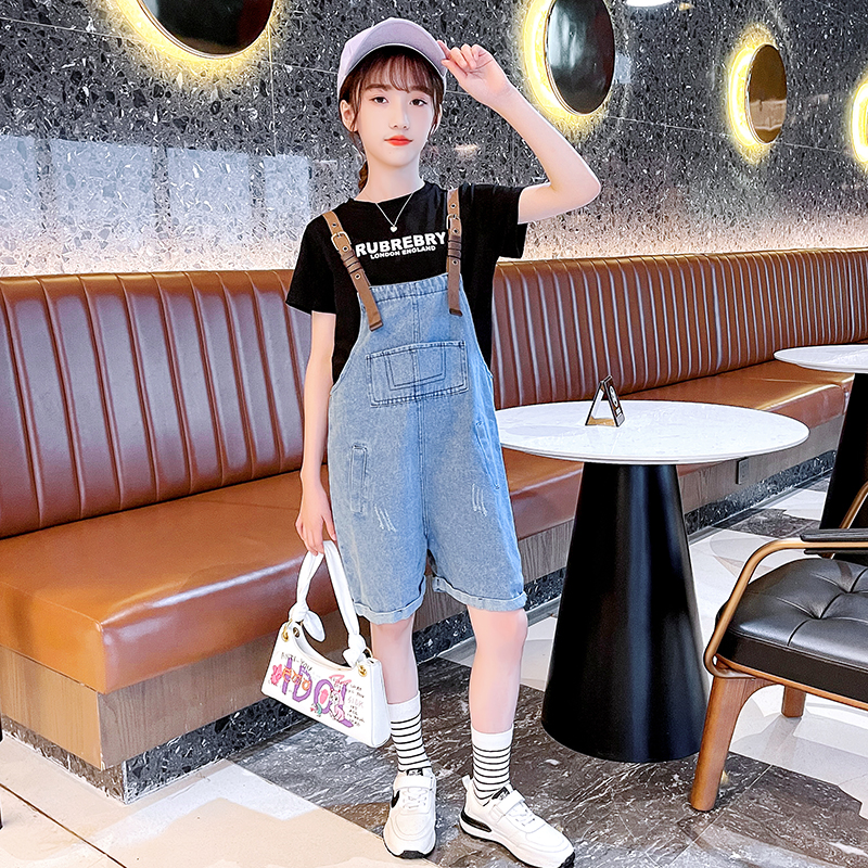 Net Red Girl's Summer Loaded baby bag pants suit 2022 The new CUHK Fairy Girl's Summer Children Two sets