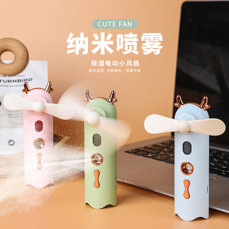 Handheld spray fan cartoon student USB charging mute moisturizer desktop water spray moisturizing mini-electric fan