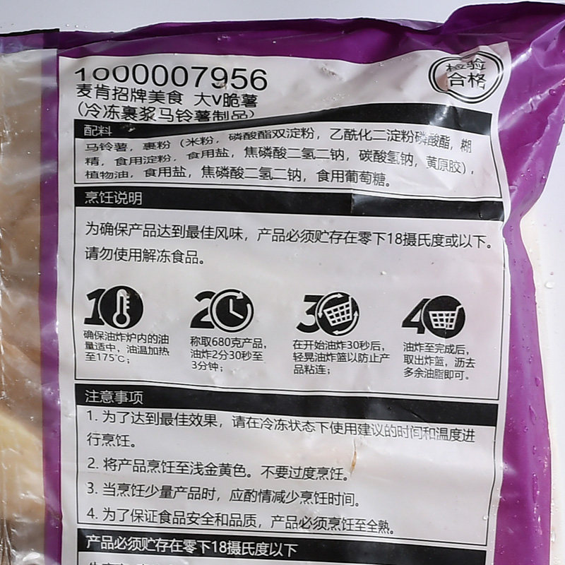 McKenda V crisp potato 2 5kg*4 packs Western dinner hamburger shop dedicated fried frozen semi-finished products