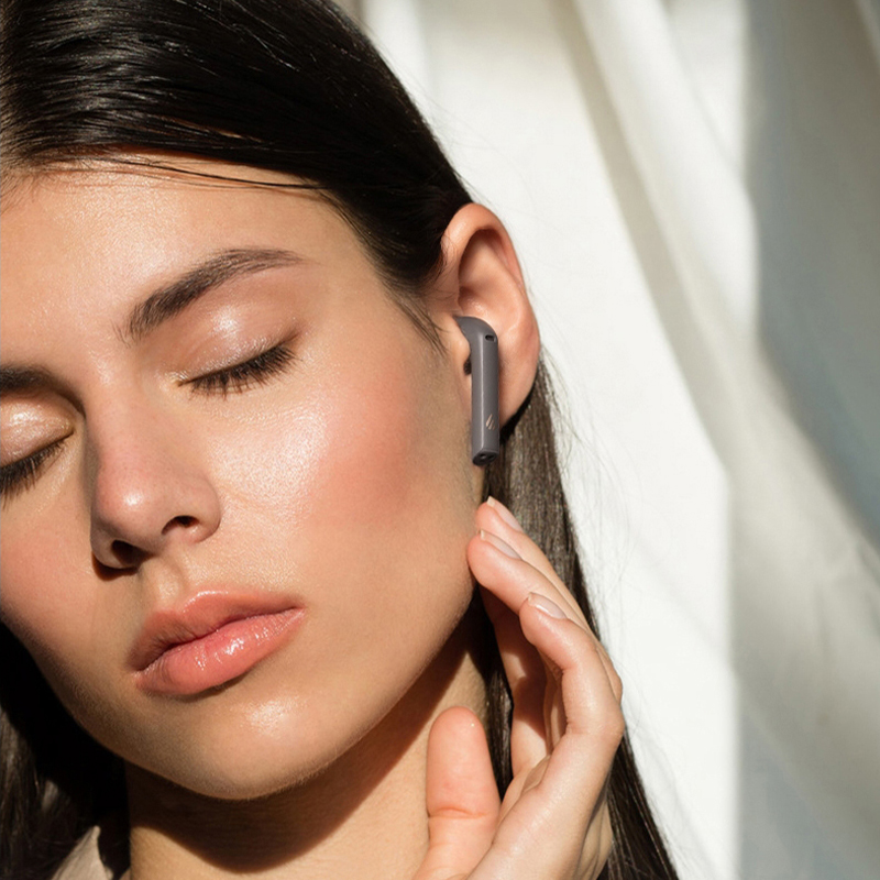 Real wireless headphones on the phone