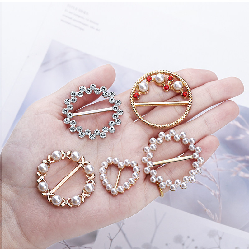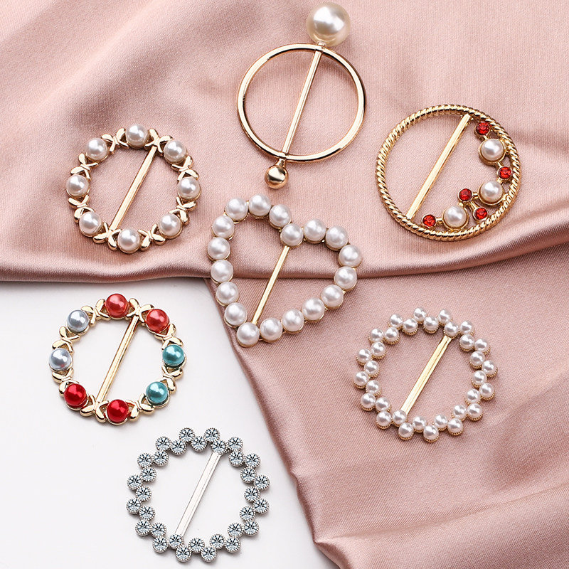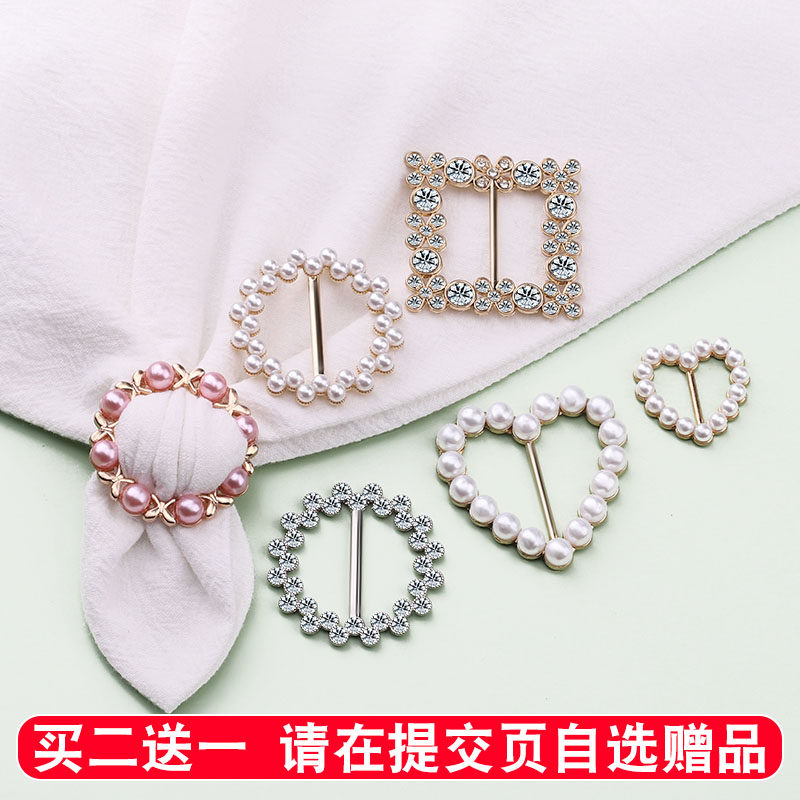 Corner knotted button hem summer decoration wild T-shirt silk scarf buckle High-grade pearl creative small square towel buckle woman