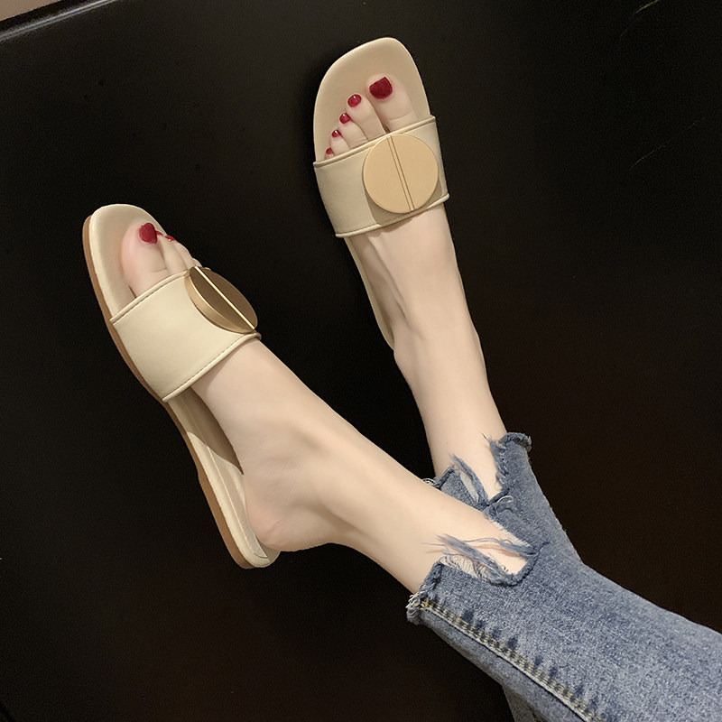 Beach Shoes Women Summer Comfort 2021 New Summer Slippers 100 Lapped Nets Red Word Drag Women Fashion Müller Half Slippers