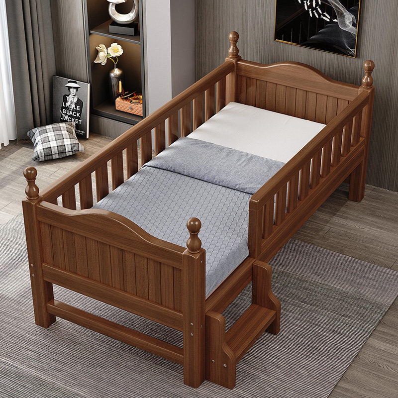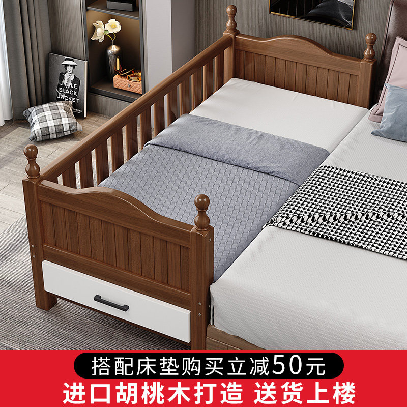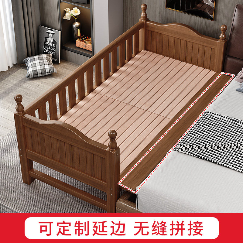 Child Bed Solid Wood Bed Walnuts Single Beds Girl Princess Bedside Bed Boy Widened Bed Baby Splicing Large Bed
