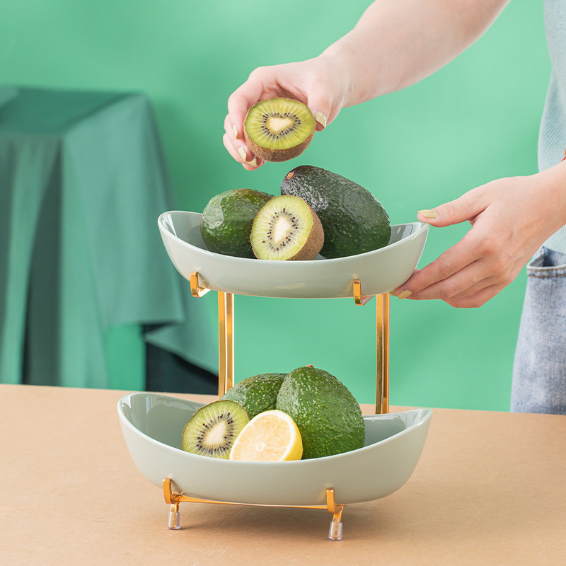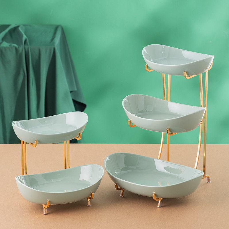 YBGP2-10 Butter Fruits Green Two-storey Ceramic Fruit Pan Containing shelf YBGP3-10 Ox Oil Fruit Green Three-layer Ceramic Fruit Tray Containing shelf