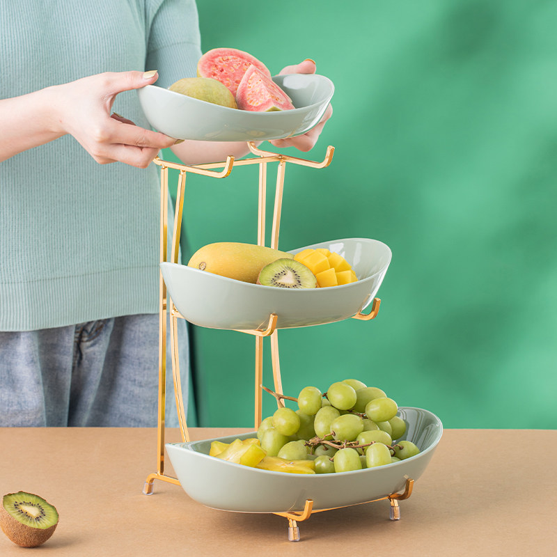 Home light extravaganza Three layers of fruit tray Living room Tea Table Modern Nordic Ceramics Advanced web Red fruit basin Zero food tray