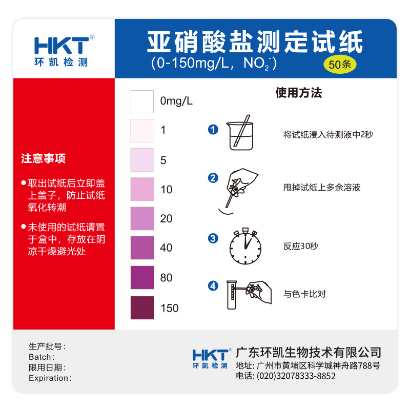 Huankai nitrite determination test paper surface water aquaculture water industrial wastewater quality rapid analysis test paper