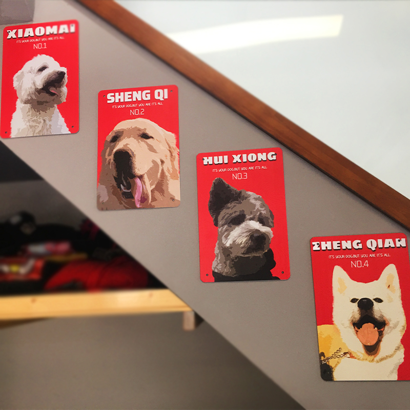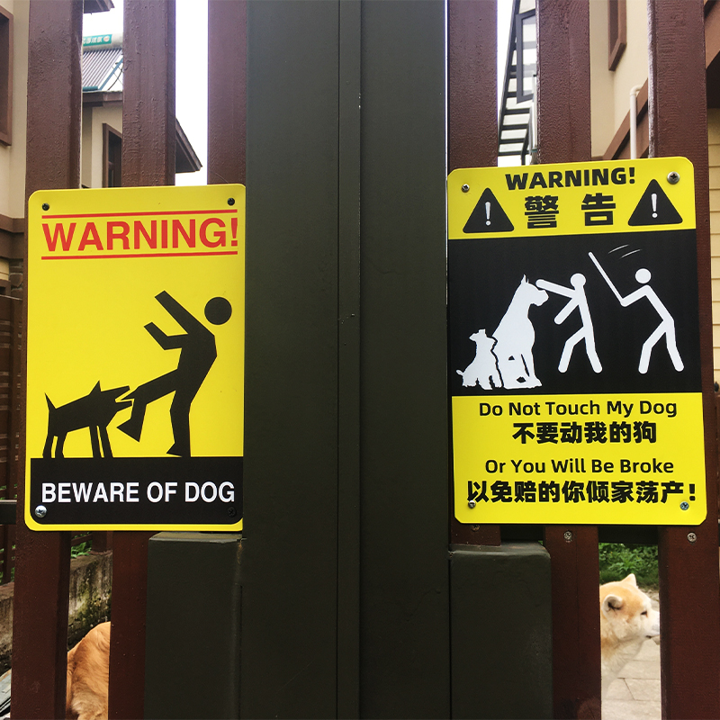 Pet Souvenirs Custom Pet Shaw Statue With Evil Dog Warning Signs Sheet Metal Painting Custom Pooch Remembering Photos