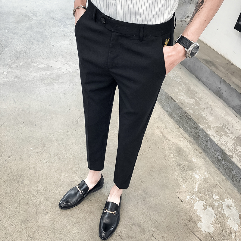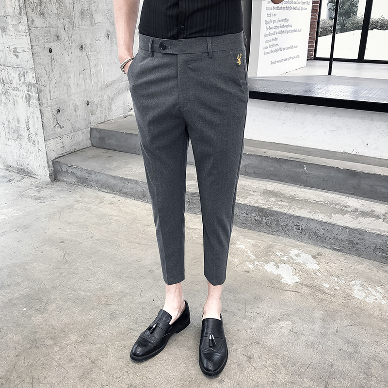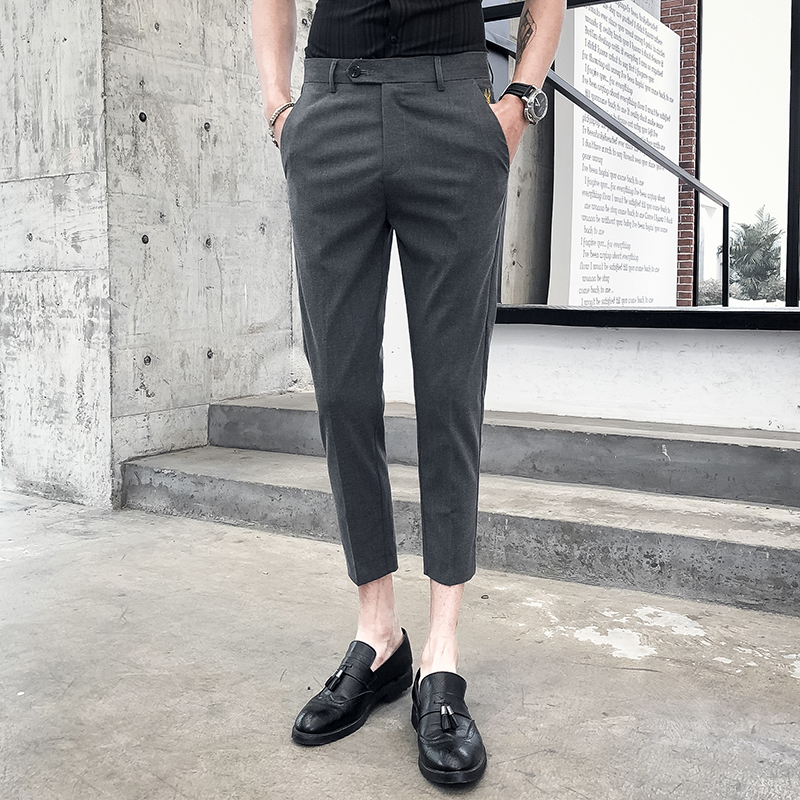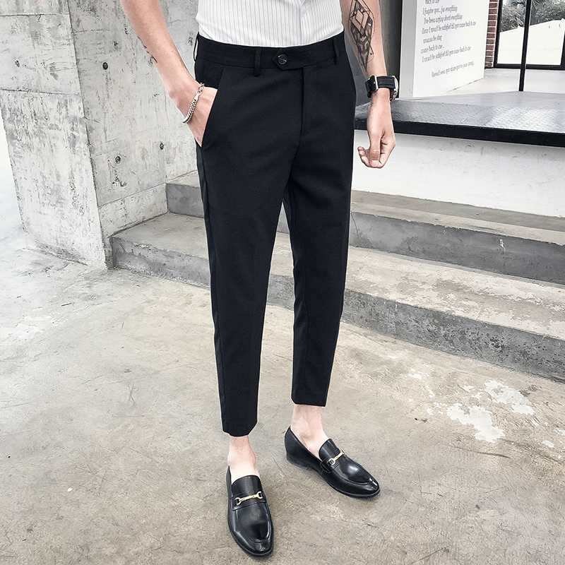 Summer men's ninth casual pants slim small feet Korean version trend all-match business formal dress solid color thin trousers men