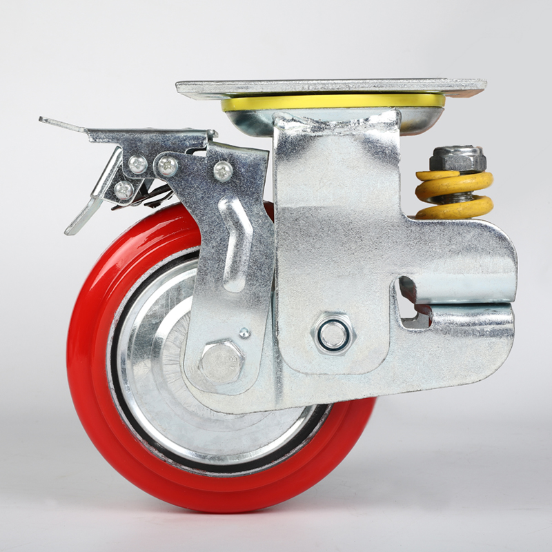 6 inch spring shock absorption caster 5 inch heavy polyurethane PU wheel 8 inch cast iron wheel 4 inch galvanized traction wheel
