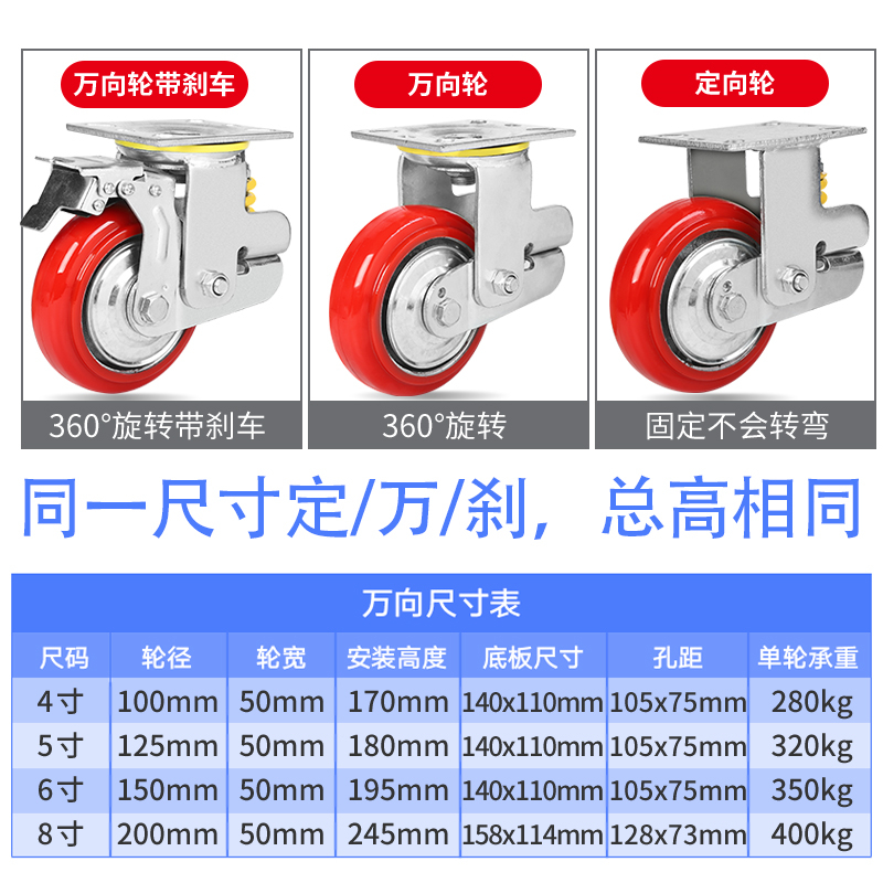4-inch steering wheel (fixed) 4-inch tendency wheel (360° steering) 4-inch tendency wheel with brake wheel 5-inch directional wheel (fixed) 5-inch steering wheel (360° steering) 5-inch