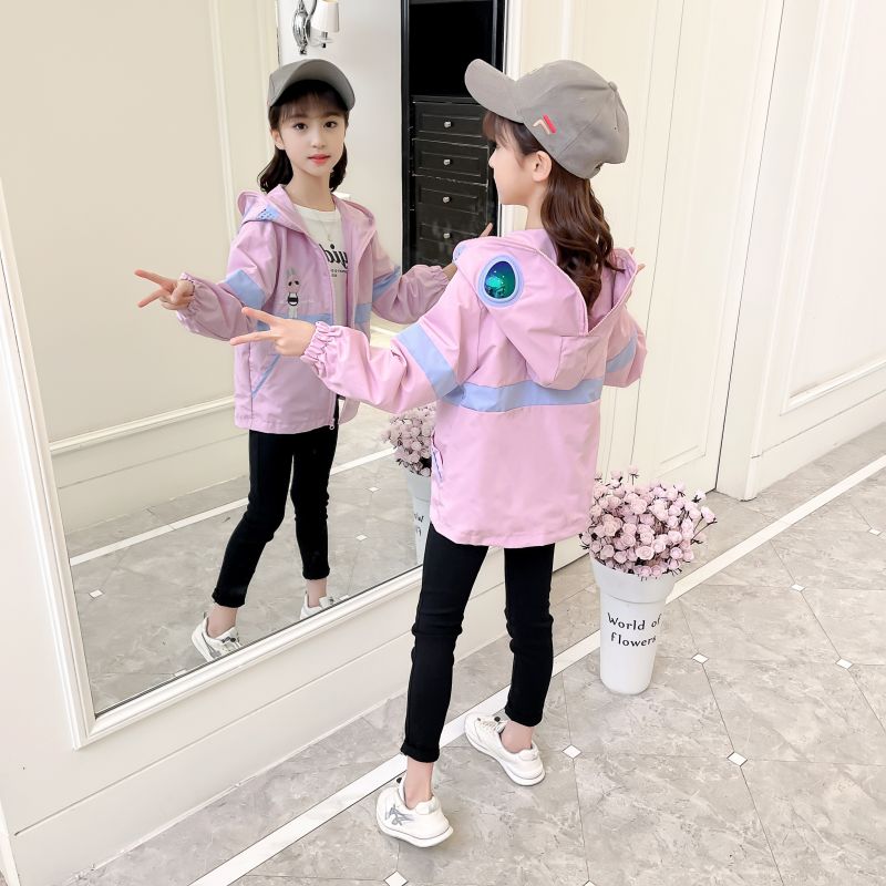 Girls Spiderman Jacket 2022 Autumn Hooded Glasses Loose Fashionable Jacket Korean Cartoon Color Matching Windbreaker