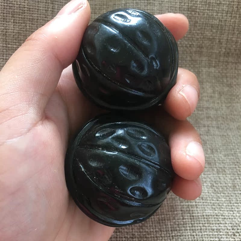 Hetian jade jade handball fitness health ball hand massage sapphire rough stone carving walnut muscle relaxation gift