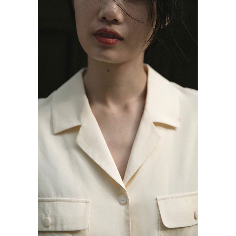 RUISHI Reuded with unheart-shaped retro ice sensation short sleeve shirt female blouse Summer P8E L