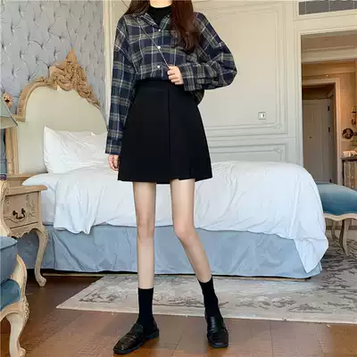 (mercerized cotton)skirt female 2021 new spring and autumn Hepburn style high waist A-line asymmetric pleated suit skirt