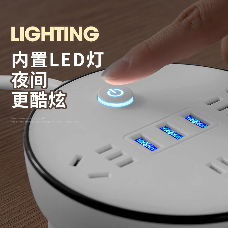 (Zebull 343) retractable Plugboard With Wire Towed Extension Cord Longline Socket Panel Porous with usb insert