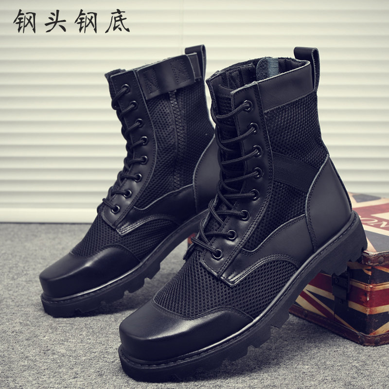 Summer net face Warring boots Men's clothing Breathable Square Head Security Bull Leather Boots Large Size Martin Boot Steel Head Steel Bottom Security