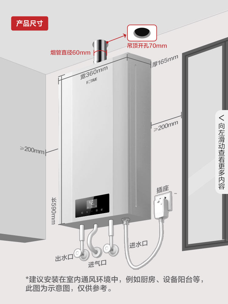 Fotile square too JSQ30-X16T1 antifreeze water heater thermostatic instant hot zero cold water 16L official flagship store