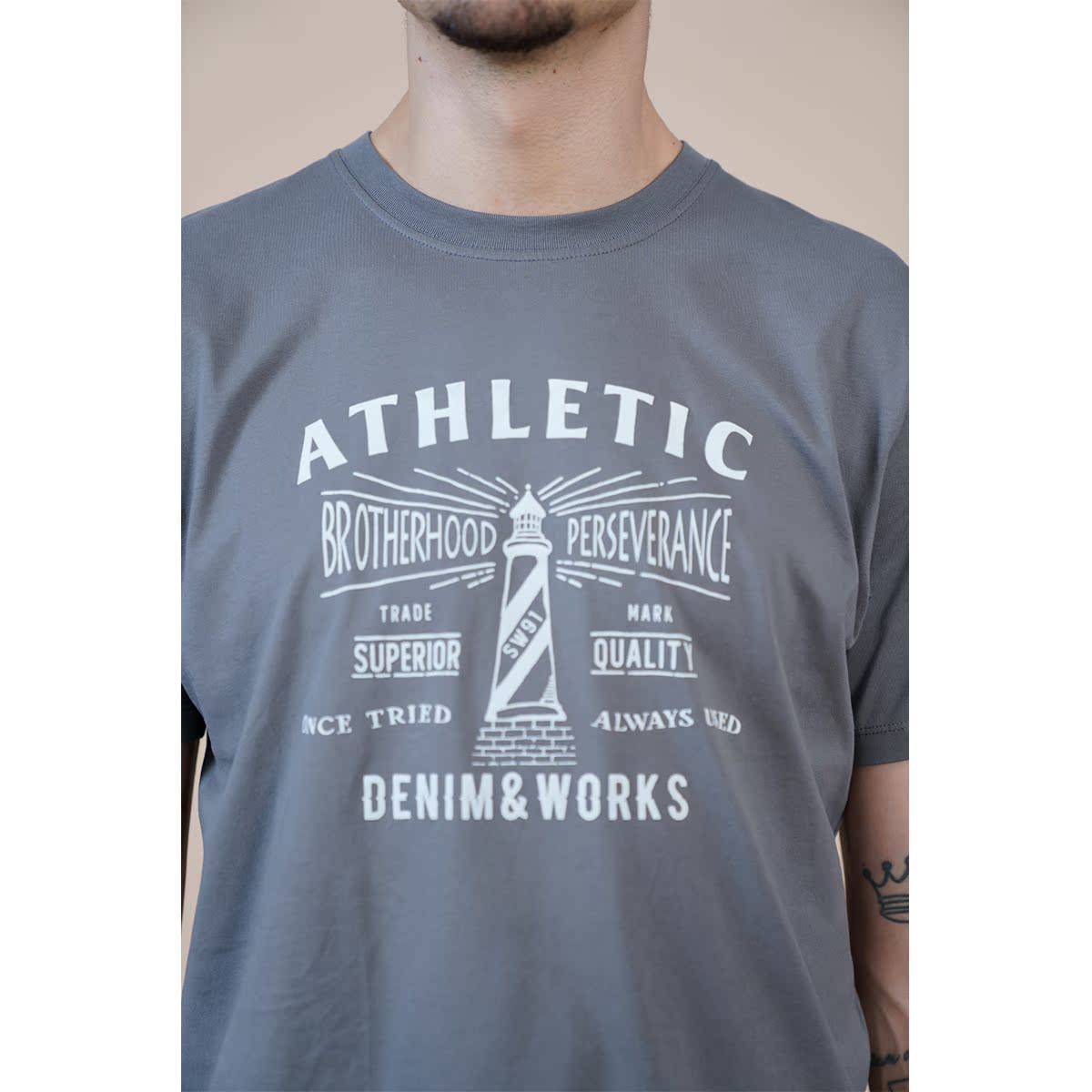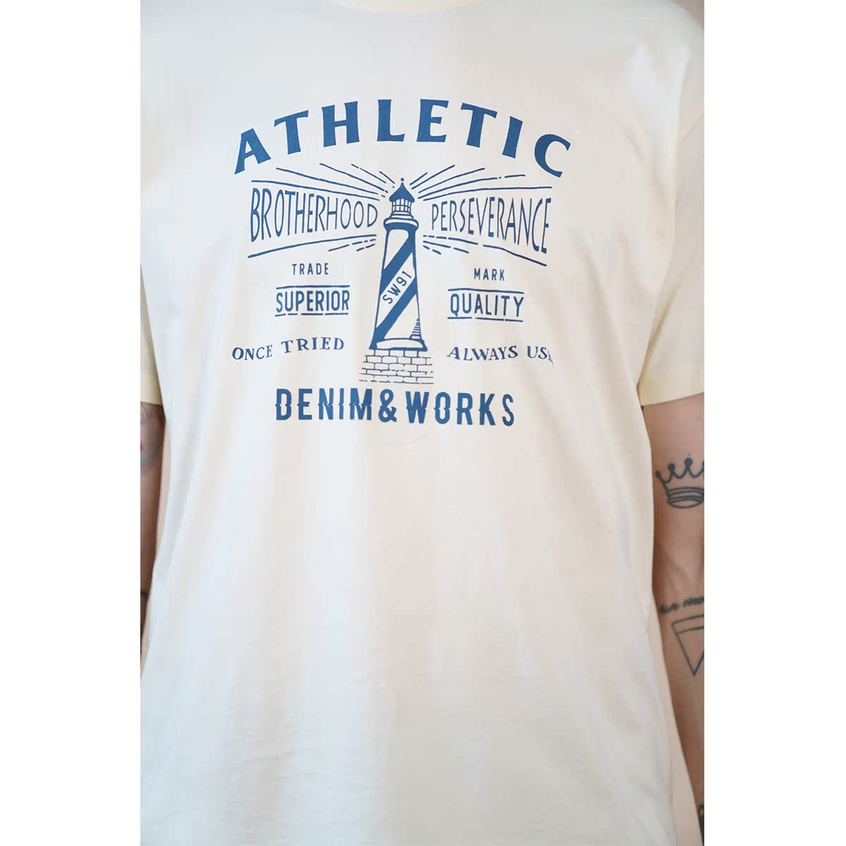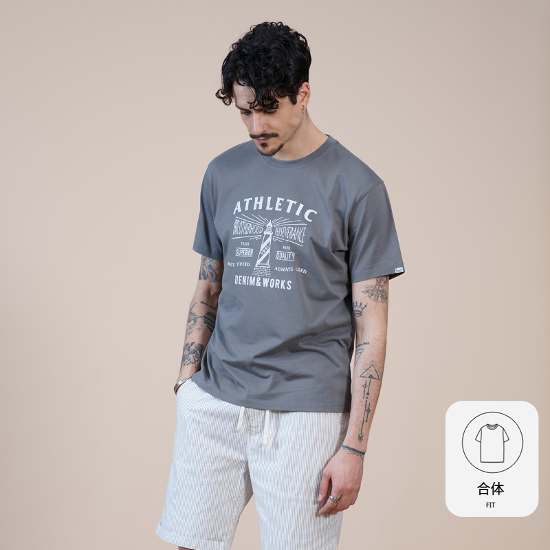 Simwood minimalist men's clothing (in-style version) 2021 Summer new chest front lighthouse printed short sleeve T-shirt man