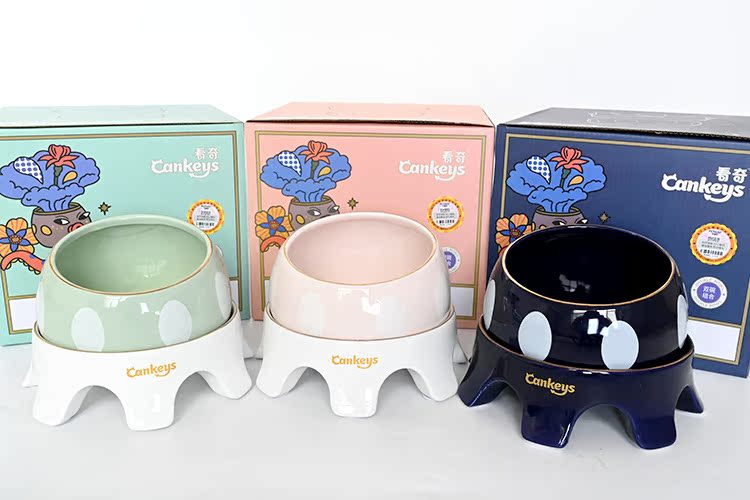 Meow's cat shop Cankeys See the ChiSeven claw fish combined bowl Cat Water Bowl bowl Bowl Dual-use Bowl protect the cervical spine