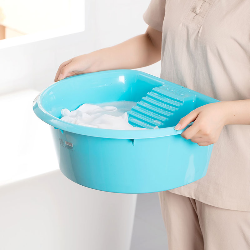 Tea flower laundry basin with washboard baby rubbing basin plastic washbasin Home integrated student basin