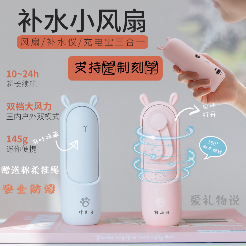 Couple hydration fan charging treasure - Black gift box couple hydration fan charging treasure - pink gift box pink water replenishment small fan charging treasure pink water replenishment fan blue fan