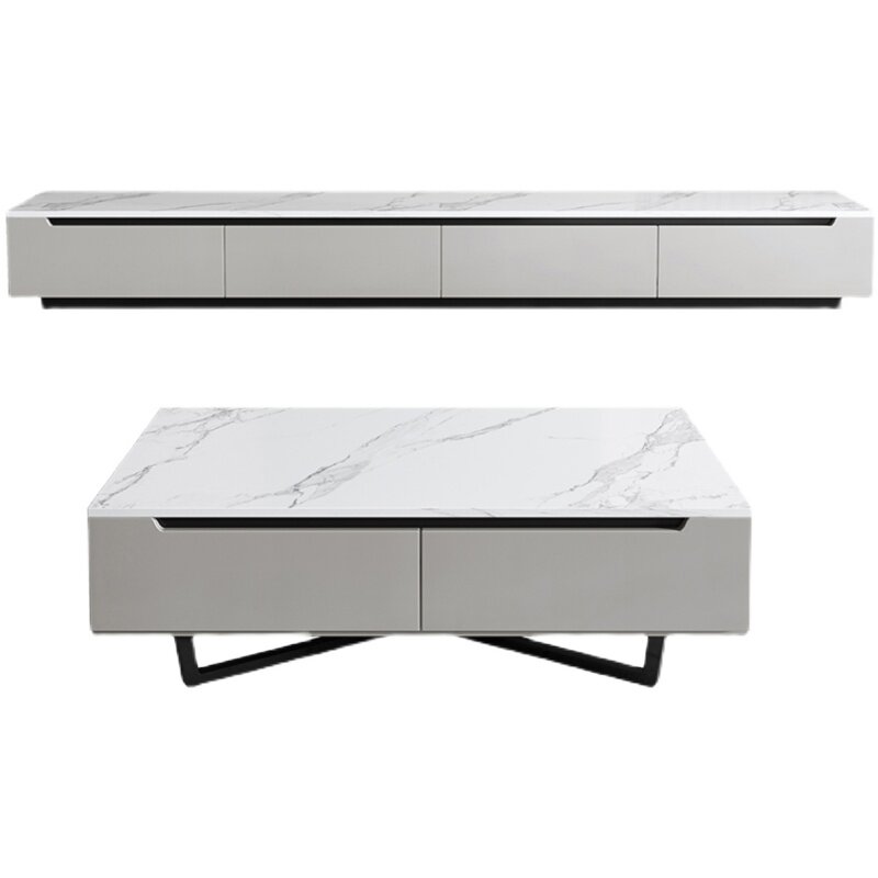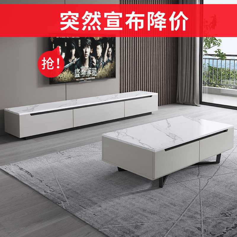 Light luxury slate floor TV cabinet coffee table combination simple modern minimalist floor wall cabinet living room small apartment side cabinet