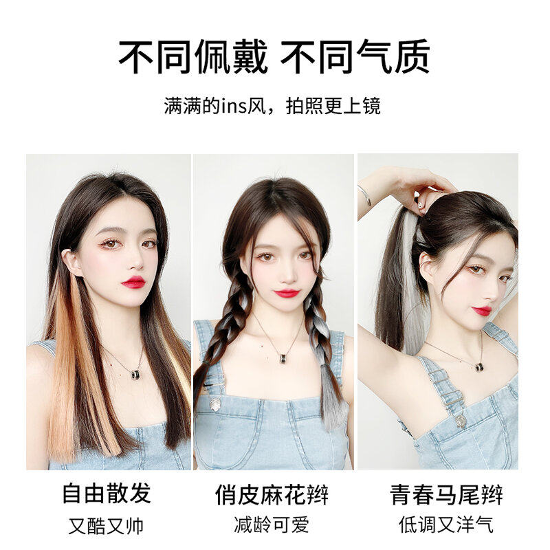 Wig piece ear hanging dye Highlight hair Female long hair One-piece incognito invisible patch color short gradient hair extension