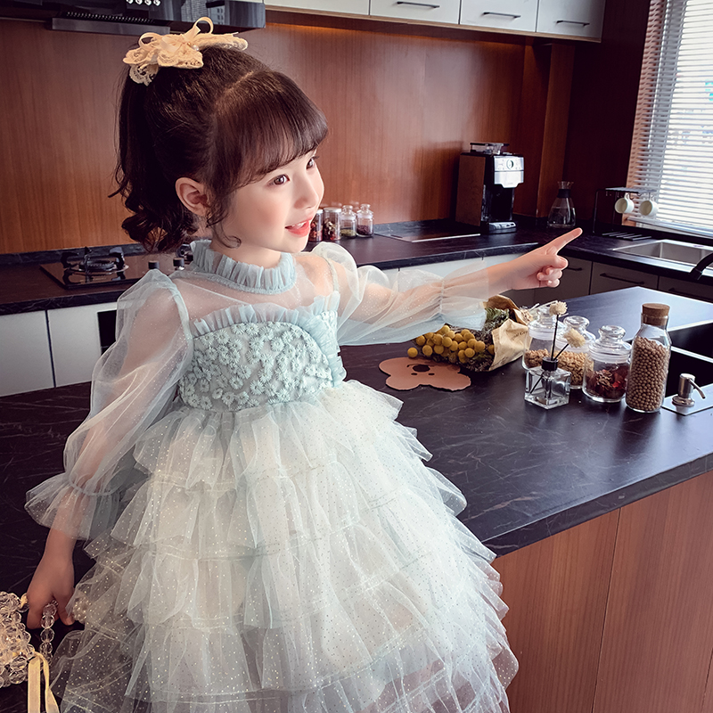 South Korean girl's dress for spring clothing 2021 new children's Korean version of the foreign web yarn cake dress girl princess nepotism