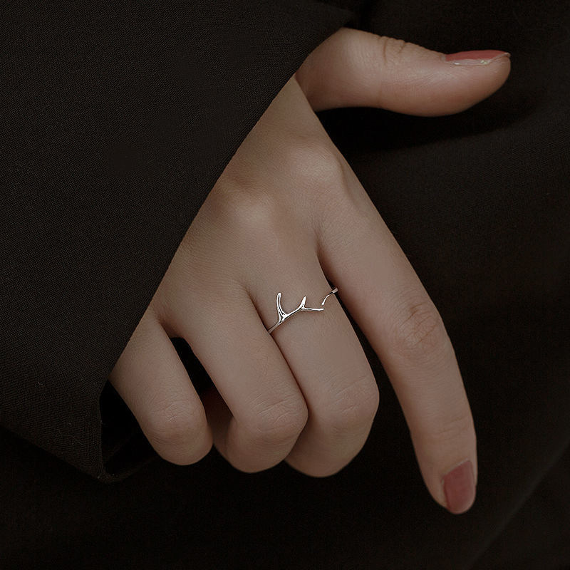 Deer Horn Opening Ring Small Crowdclass High Level Sensation Pure Silver Minimalist Circles Lukewarm Wind Not To Lose Color A Deer Have You Tail Ring