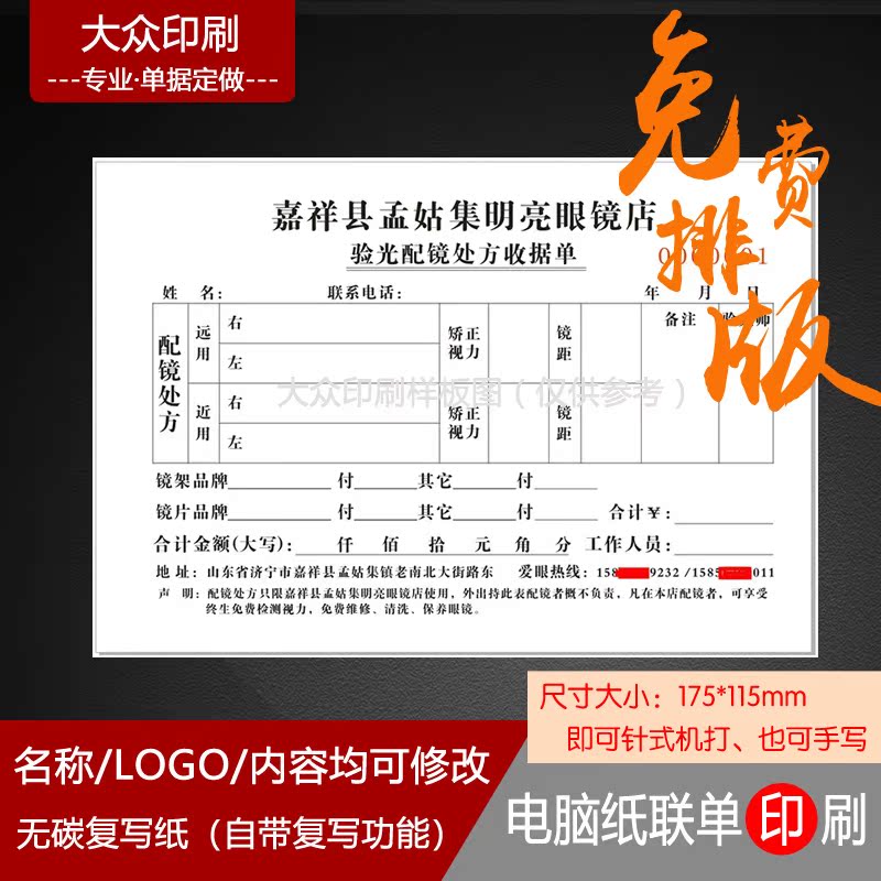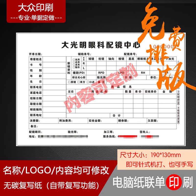 Professional Booking Receipt Glasses Accessories Mirror Single Printing Optometry Documents No Carbon Rewritten Paper Automatic Color White Red Machine Beating