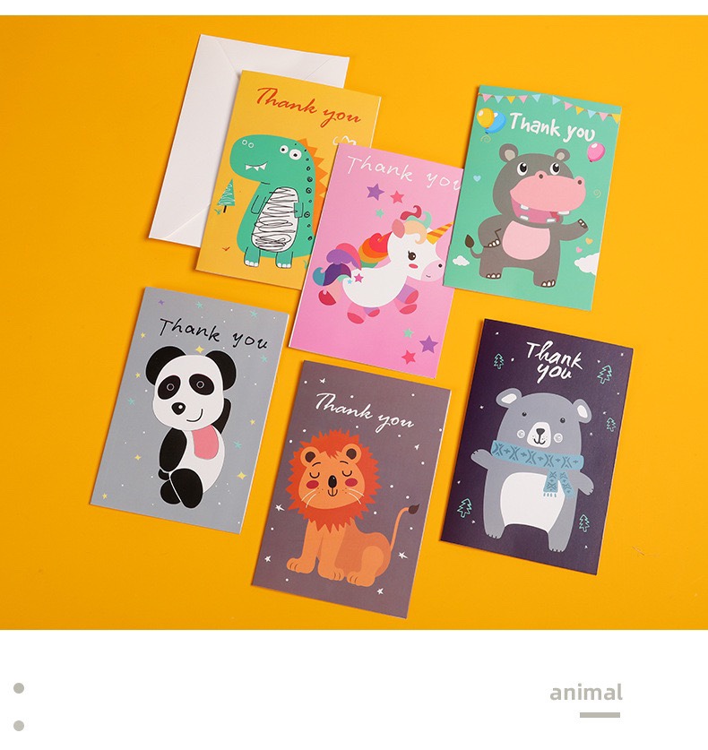Korean Creative Breakfast Hot Cartoon Thanks Greeting Card Children for Birthday Wish Blessed Card with Envelope