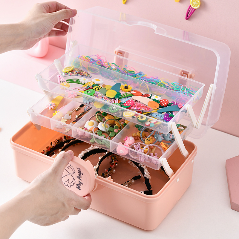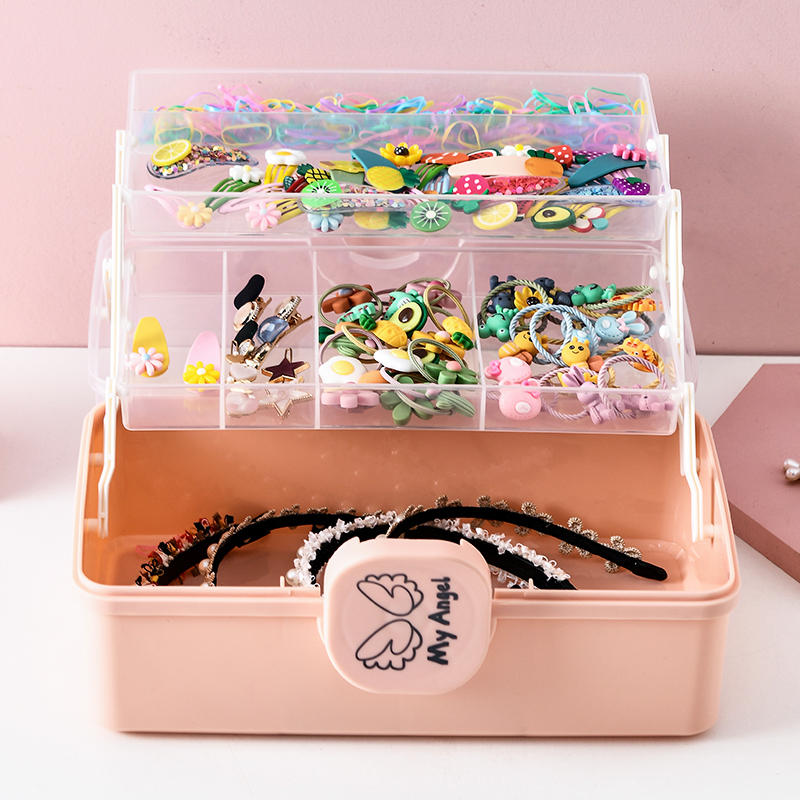 Child Hair Accessories Containing Box Baby Hair Clip Rubber Band Head Decorated Hair Clip Large Capacity Multilayer Cute Hair Ring First Decorated Case