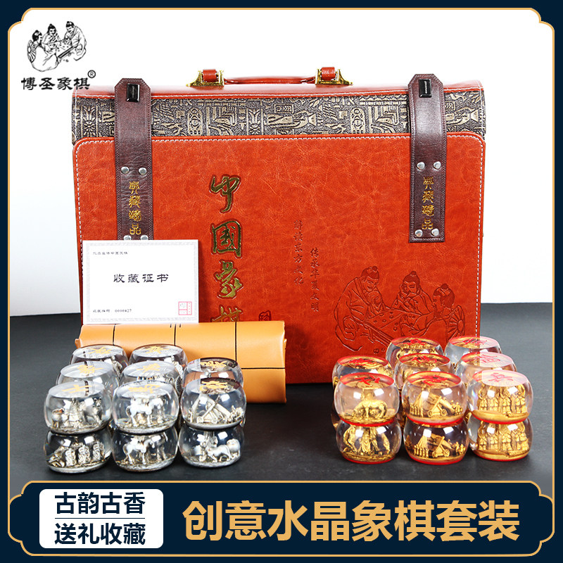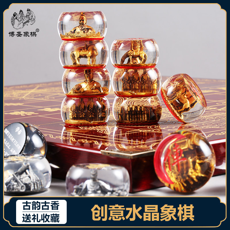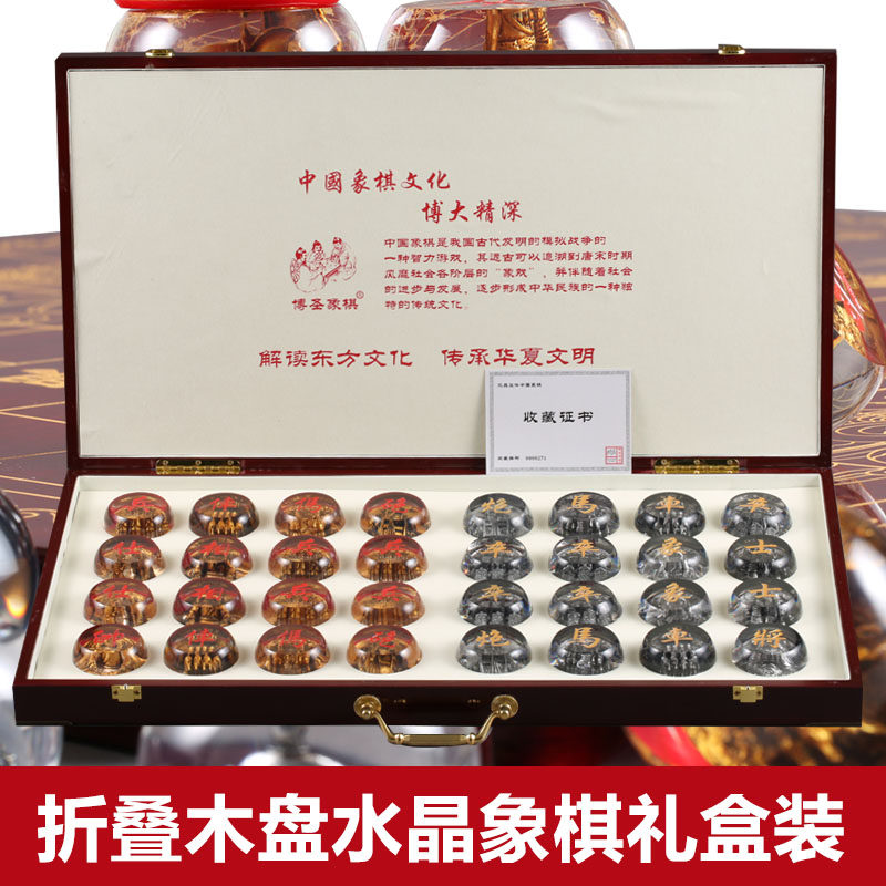 Crystal chess large transparent relief Chinese chess set gift collection folding chessboard creative characters