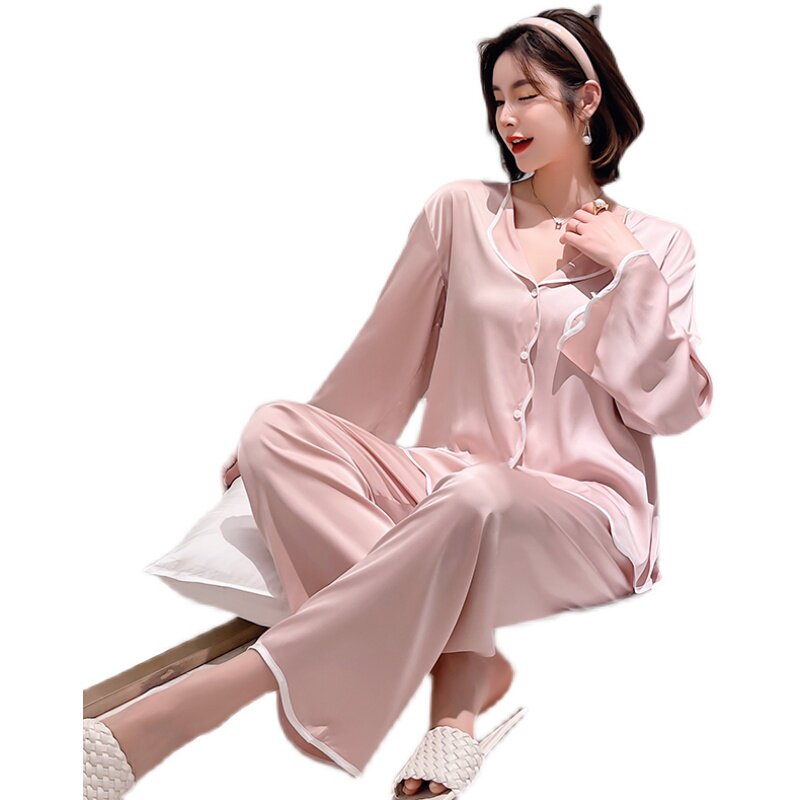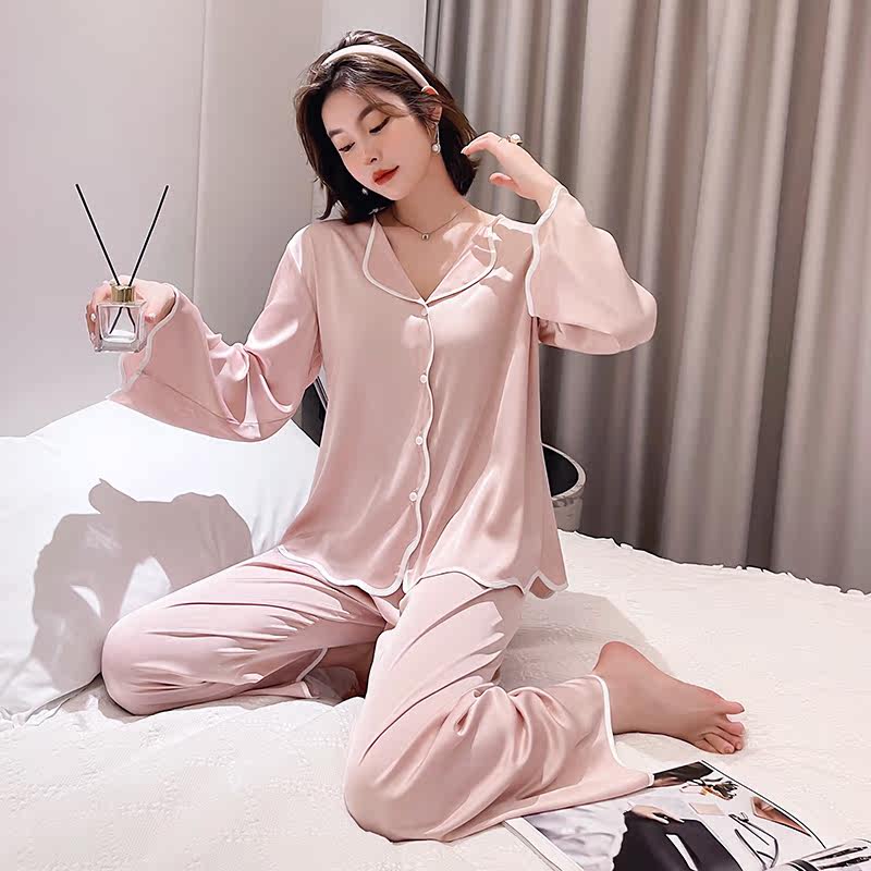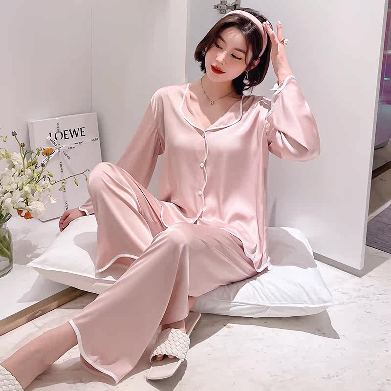 Long Sleeves Pyjamas Lady Summer Ice Silk Thin Shirts Individuality Fashion New Spring And Autumn Korean Version Temperament Home Clothing