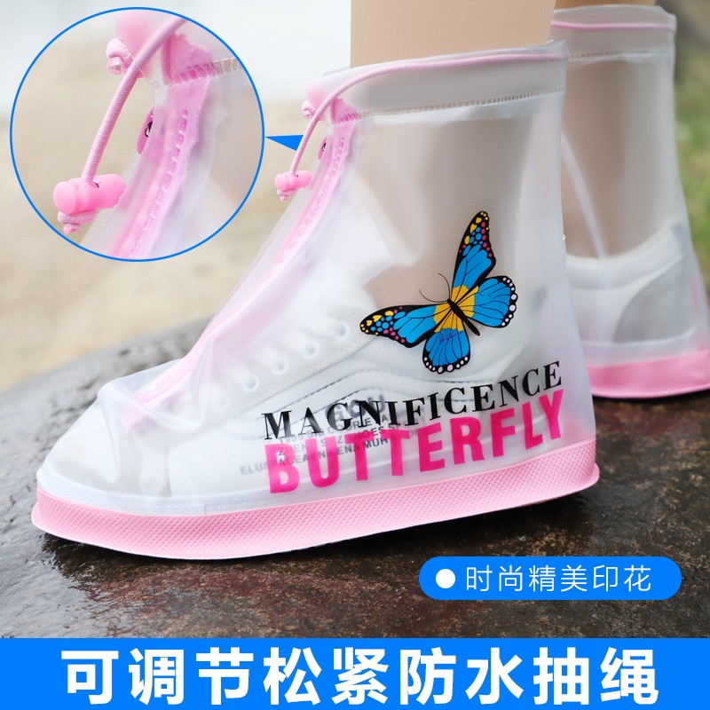 Shoe cover waterproof anti-slip fashion rain shoes thickened wear bottom silicone transparent rain boots Adult men and women Lower rainy foot sleeves-Taobao