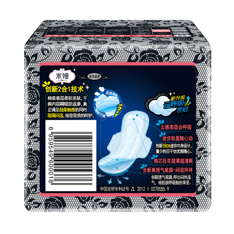 6 packs 90 pieces of Mia Black Rice 180mm mini sanitary towel daily dosage with less pad silk and soft cool female special price