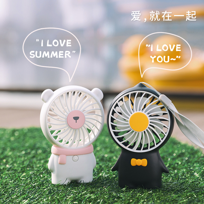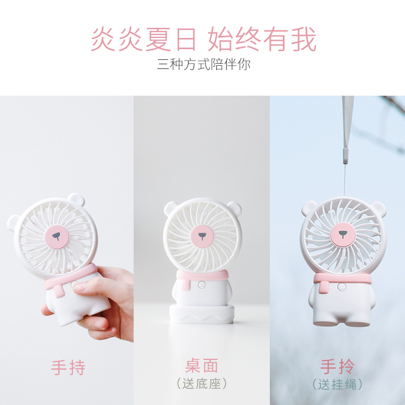 Mini handheld small fan with small USB rechargeable portable cartoon cute handheld mute electric fan with hanging rope student creative electric fan