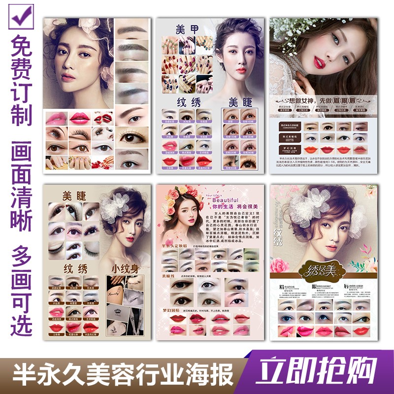 Korean semi-permanent embroidery decorative painting Micro plastic eyebrow and eye surgery poster Beauty salon wall sticker advertising poster