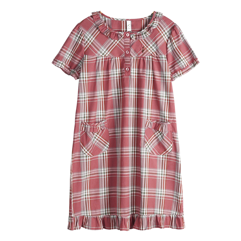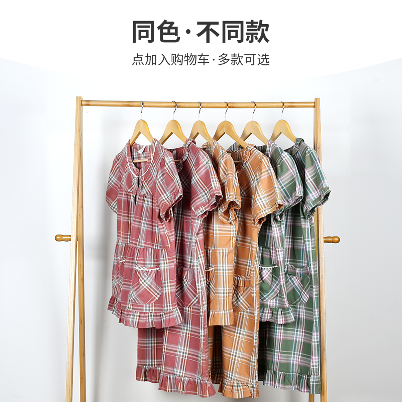 2022 new woven cotton nightdress ladies summer thin cotton short-sleeved dress homewear pajamas