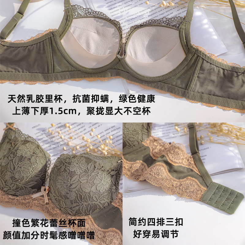 Latex underwear women's small breasts gather to display large no steel ring to collect auxiliary milk anti-drooping sexy lace girl bra flat breasts