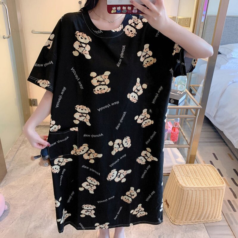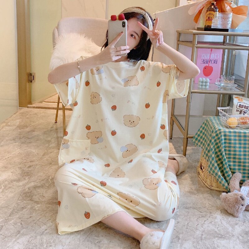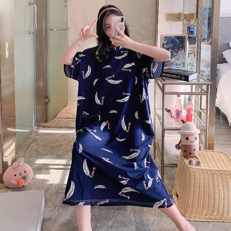 Pajamas woman summer size 200 pounds of fat MM pregnant women loose in 2021 new sleepdress thin long version of the weight increase