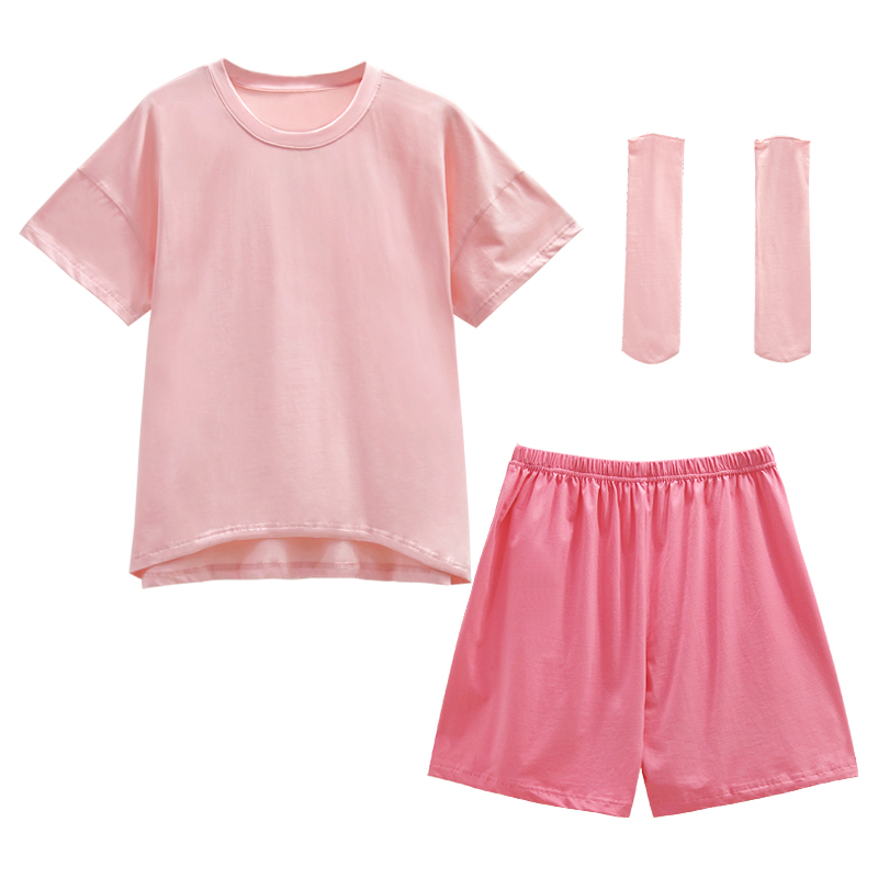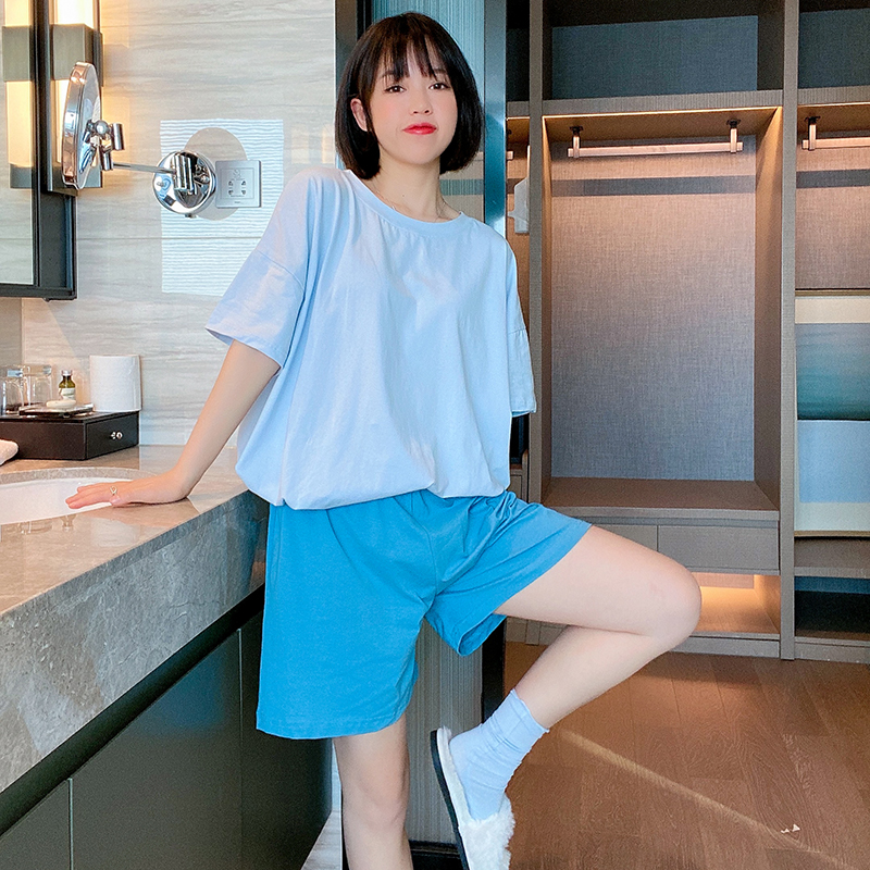 Candy Color Pyjamas Woman Summer Thin short sleeves shorts pure cotton set head ins pure color minimalist Residence Suit Suit