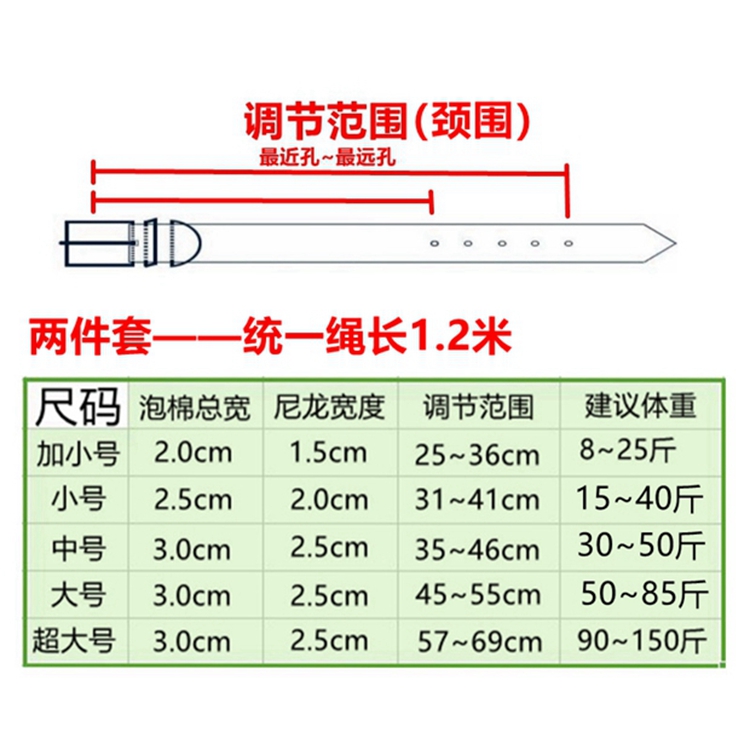 Plus small neck circumference 25-36cm, weight 8-25 catties, small neck circumference 31-41cm, weight 15-40 catties, medium neck circumference 35-46cm, weight 30-50 catties
