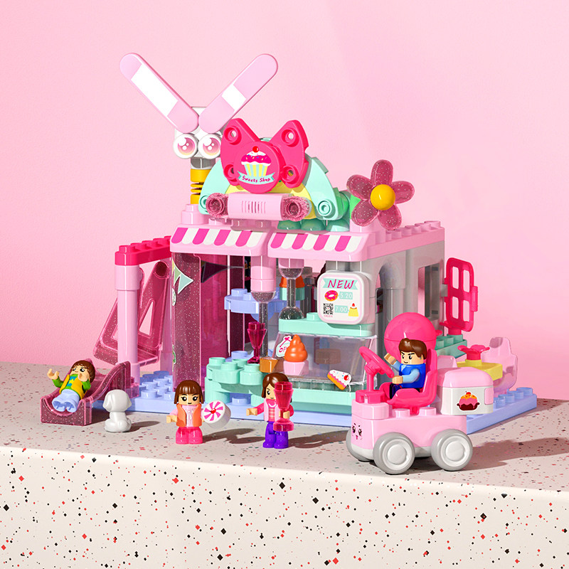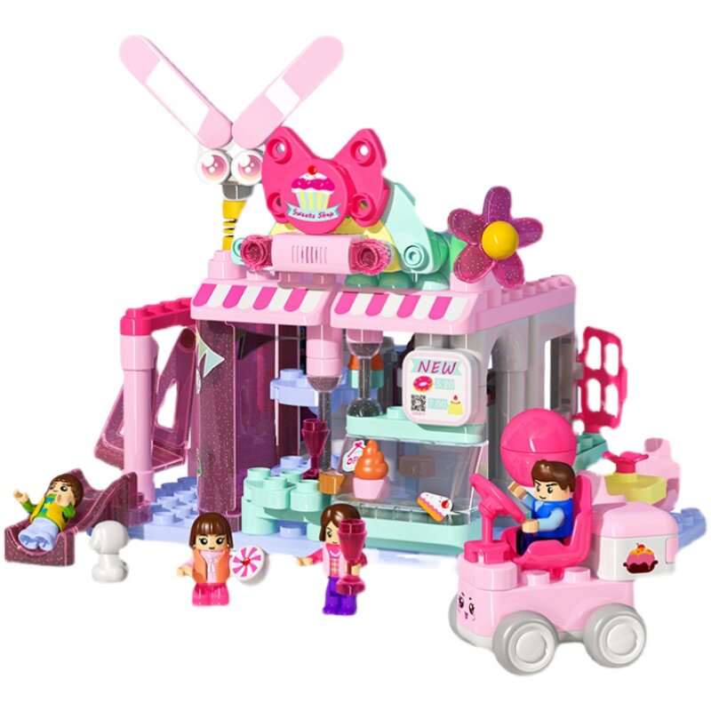 Broocan Big Grain Building Blocks Home's Dessert Shop Scene Brocan Children Puzzle Toys Girls Dress Up Family Wine