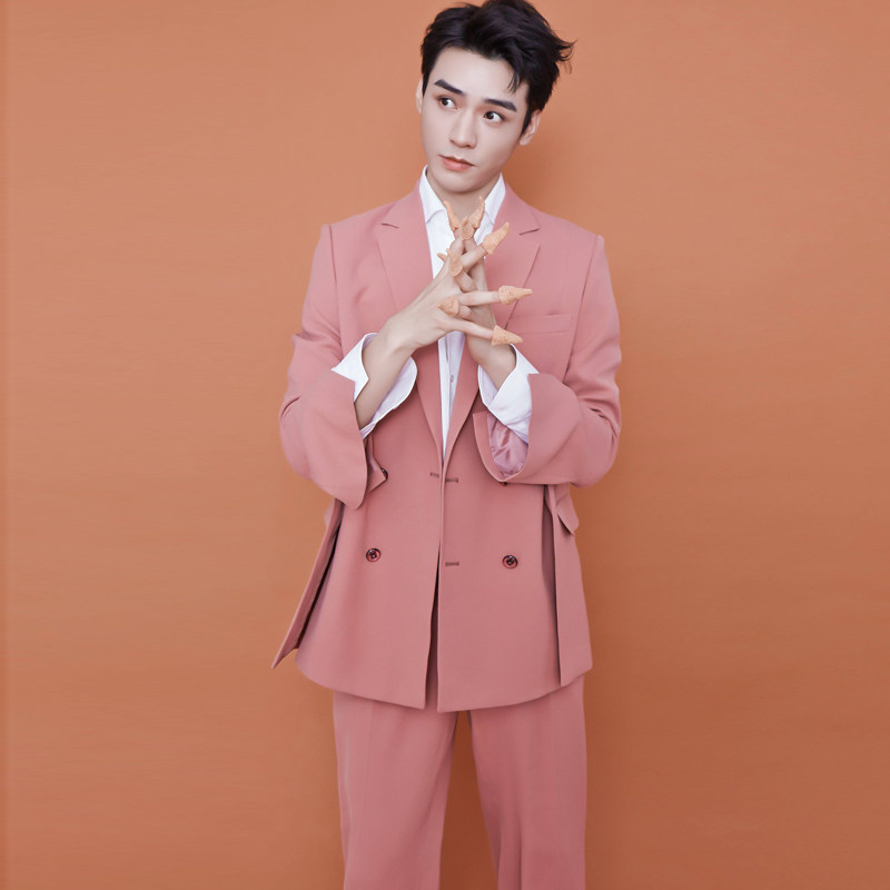 Gong Jun star net red with pink loose catwalk neutral fashion art examination double-breasted men's suit suit 1052