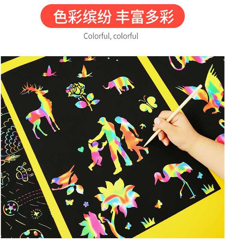 Scrape Paper Dazzling a4 Scraped Painting Sand Painting Paper Students Children Color 8K16K Monochromatic Scraped Wax Painting Fine Art Graffiti